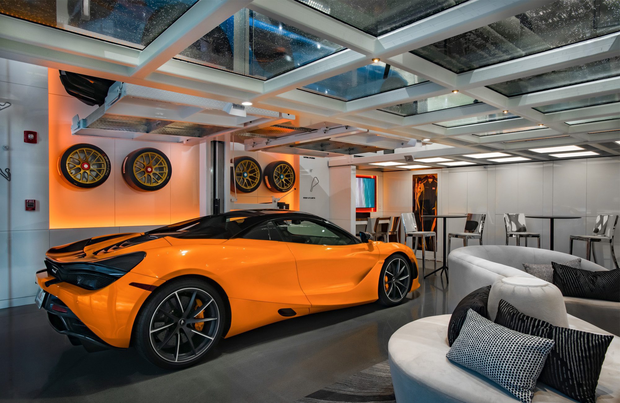 Blue Lantern Studios transformed a two-car garage at the Atlanta Motorsports Park into a luxury entertainment venue and high-end auto gallery to house and display a world-class collection of race cars.