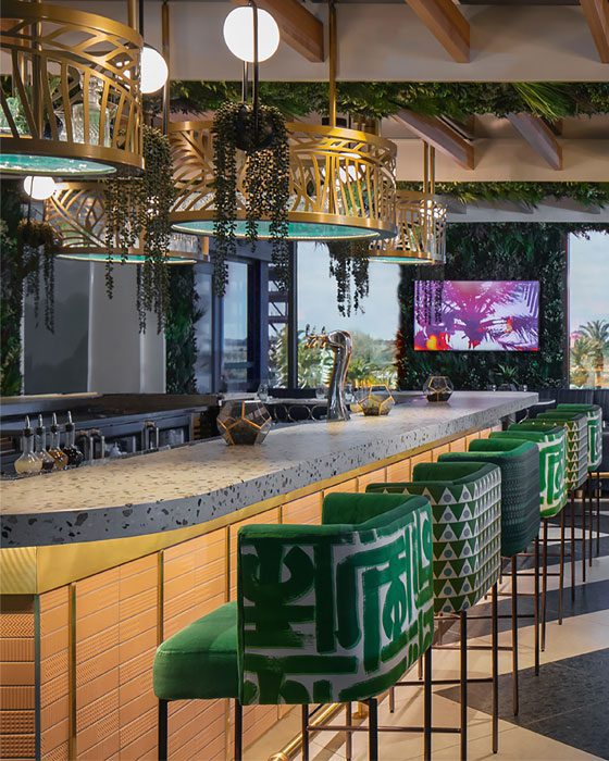 The Wave Hotel showcases the property’s signature focus on art, technology, and unexpected design. A striking collection of contemporary art fills floor-to-ceiling niches. The furnishings, too, double as artwork, with iconic modern pieces designed by Eero Saarinen, Warren Platner, and Marcel Wanders. The 234-room hotel includes two restaurants, a lobby bar, a ballroom, and meeting rooms, as well as 18 luxurious suites.